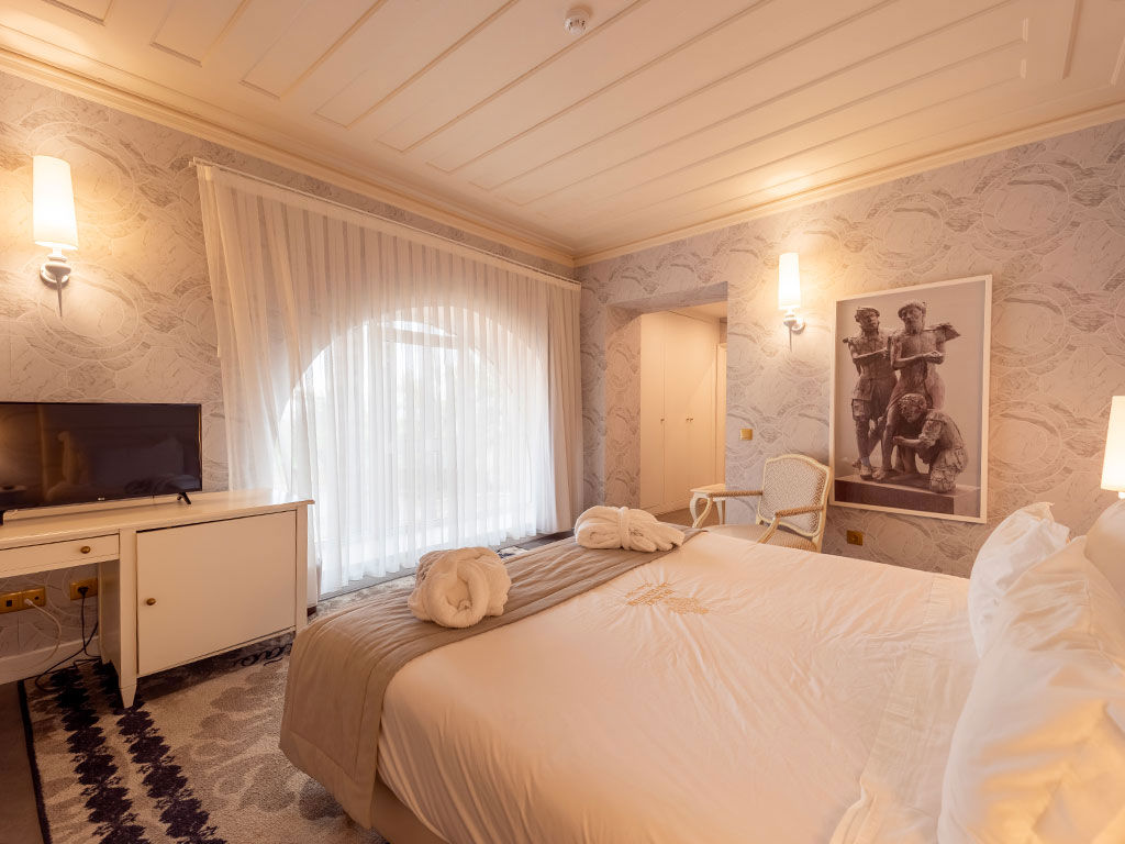 Immerse yourself in the luxury and refinement of the João de Ruão suite, specially designed for unique moments of well-being. The suite was designed to honor the architect and sculptor João de Ruão, creator of the limestone altarpiece (Altarpiece of the Virgin and Child), dated 1544. The altarpiece belonged to the chapel in the São Silvestre Palace (formerly Quinta do Paço).